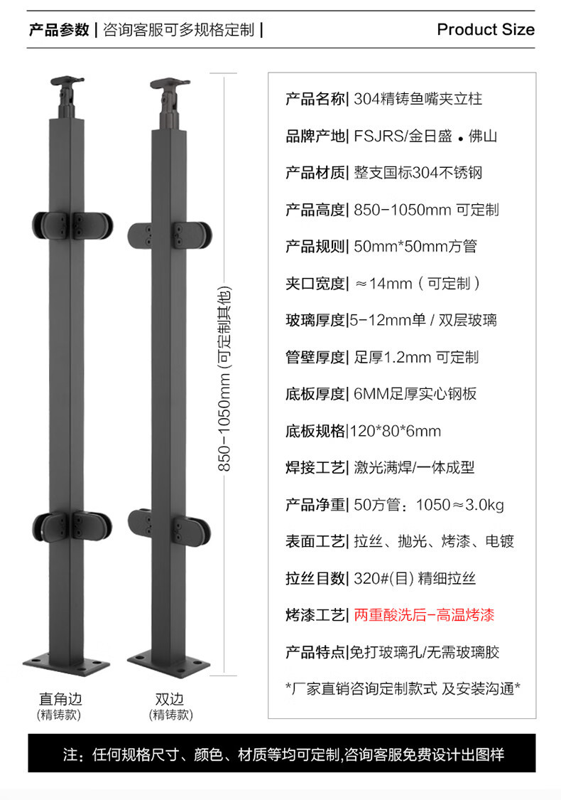欄杆高度(一般在 900mm-1200mm之間,具(jù)體規(guī)格可按用途設定)