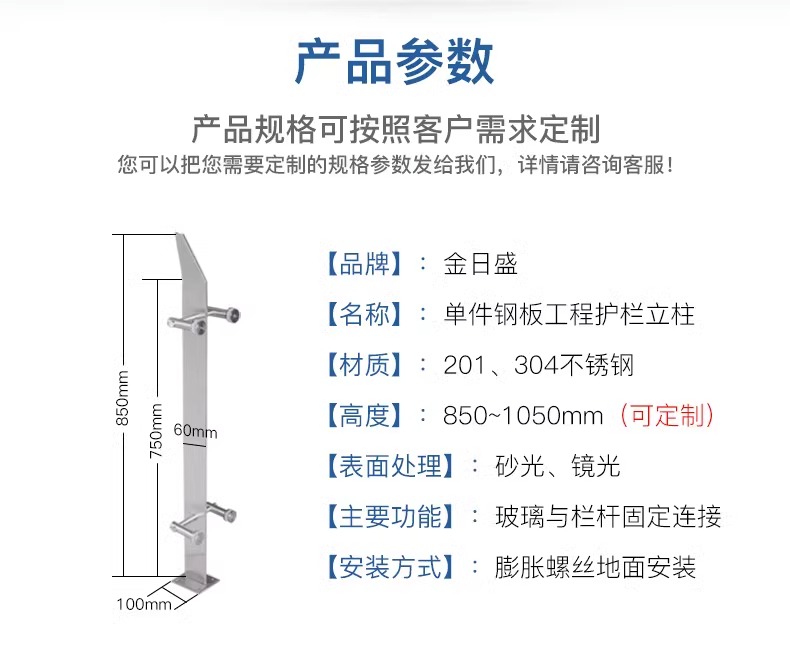 此產品為工程(chéng)護欄立柱,多次(cì)被市政府,高鐵站,飛機場,超商,大型企(qǐ)業采購。強度高,耐磨損,耐腐(fǔ)蝕,色澤好。加厚價款底座更加(jiā)結實耐用,圓棒玻璃夾安裝方便