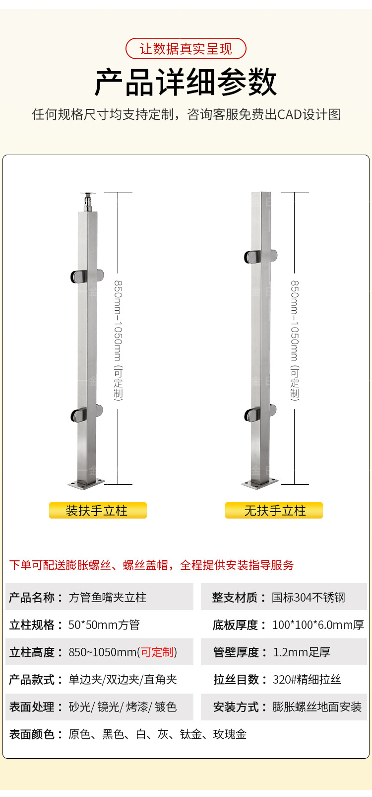 欄杆高度(一般在(zài) 900mm-1200mm之間,具體規格可按用途設(shè)定)